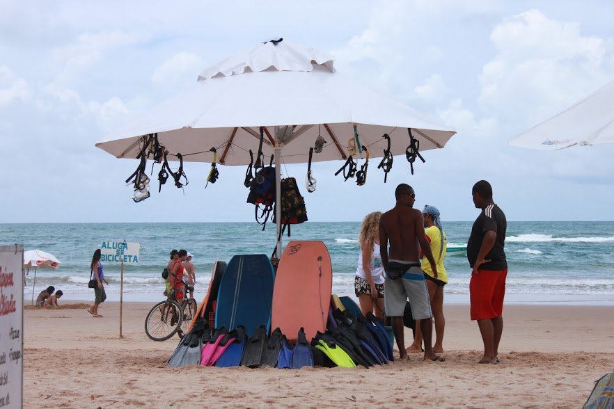 | Na praia, dá pra alugar máscaras para mergulho, pranchas e pés de pato e até bike (Foto: André Vinicius/Divulgação) |