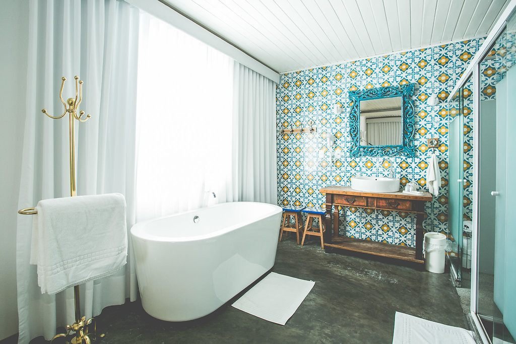 Banheiros charmosos são a marca da propriedade |