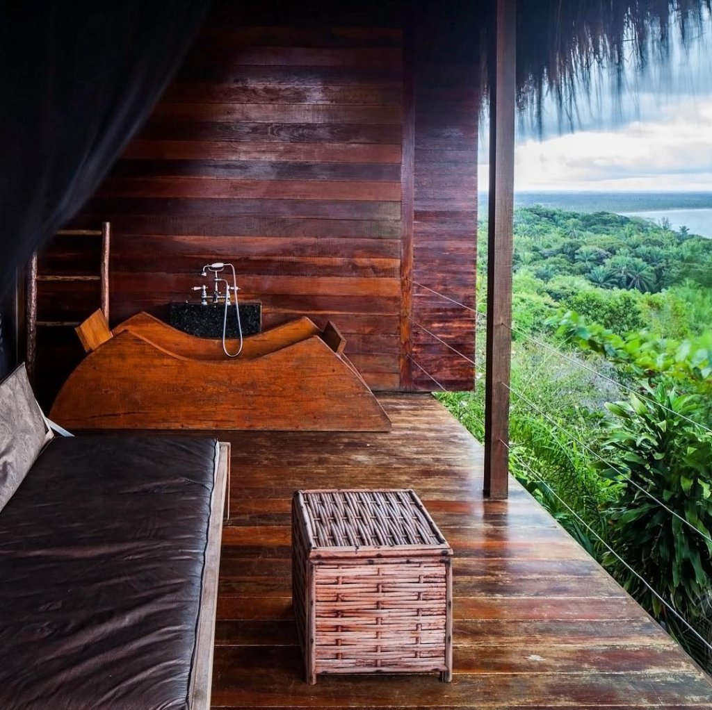 Todos os quartos têm vista para o mar e uma arquitetura em total conjunção com a natureza: muita madeira e vidro fazem moldura para a paisagem descortinada. Tudo isso sem perder o conforto. Além de redes, sofás e mais paredes de vidro, a suíte deluxe tem como diferencial uma banheira de madeira para duas pessoas na varanda. Está convencido?